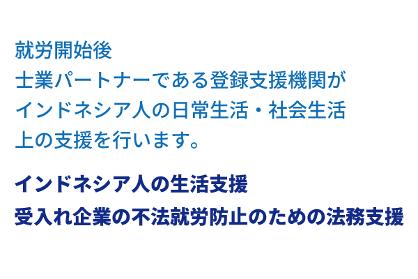 マッチングしたインドネシア人の支援は士業パートナーが行う。